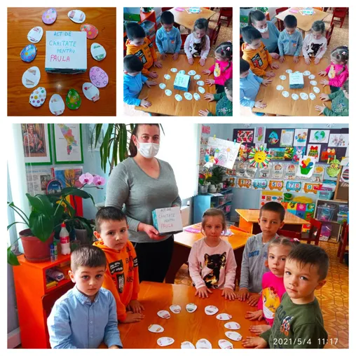 Copiii școlii noastre au donat ouă roșii și cozonac, copiilor de la Grădinița cu program normal, Maxenu, jud. Buzău.